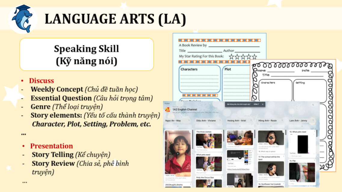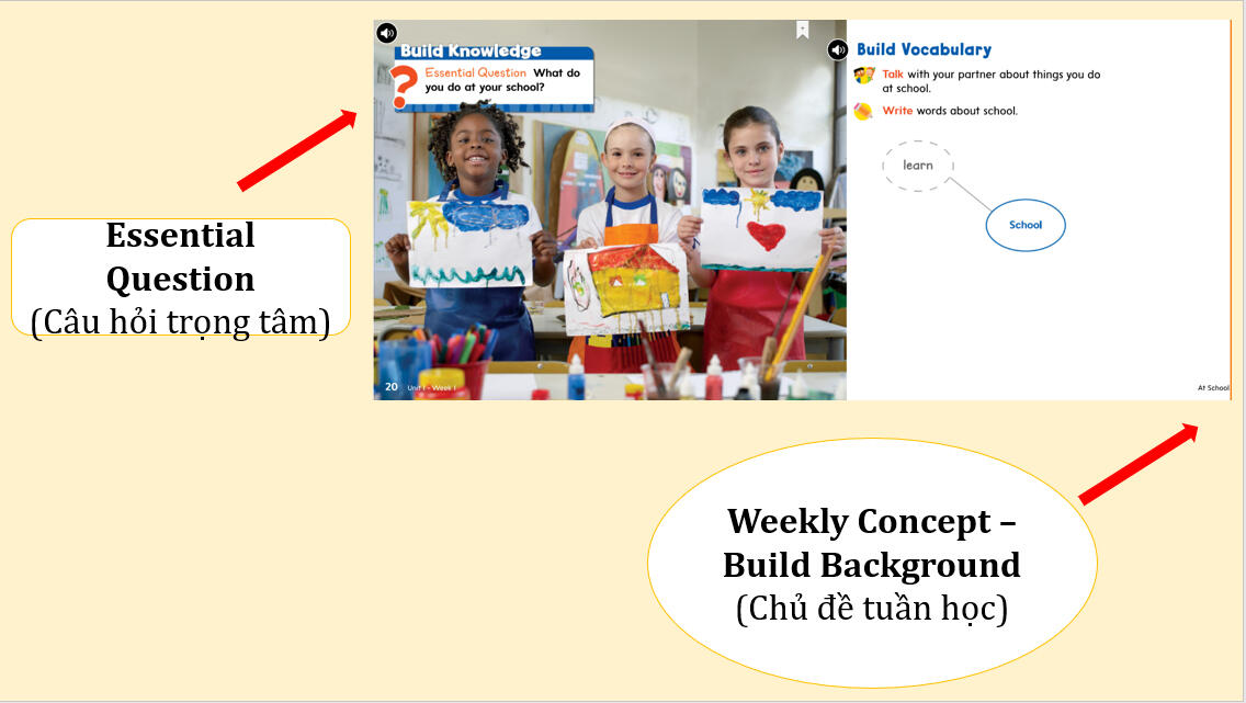 Chiến lược và kỹ năng đọc hiểu được giáo viên chú trọng phân tích chi tiết rõ ràng. Các em được tập trung phát triển đồng đều 4 kỹ năng: nghe – nói – đọc – viết trong các bài học. Từ vựng hàng ngày sẽ được bổ sung thông qua các tình huống giao tiếp theo chủ đề của từng tuần (weekly concept), giúp các em rèn luyện phong cách và tư duy, phát âm chuẩn như người bản xứ, có khả năng sử dụng tiếng Anh để nghiên cứu hoặc học tập các môn học khác khi học lên cao hơn.